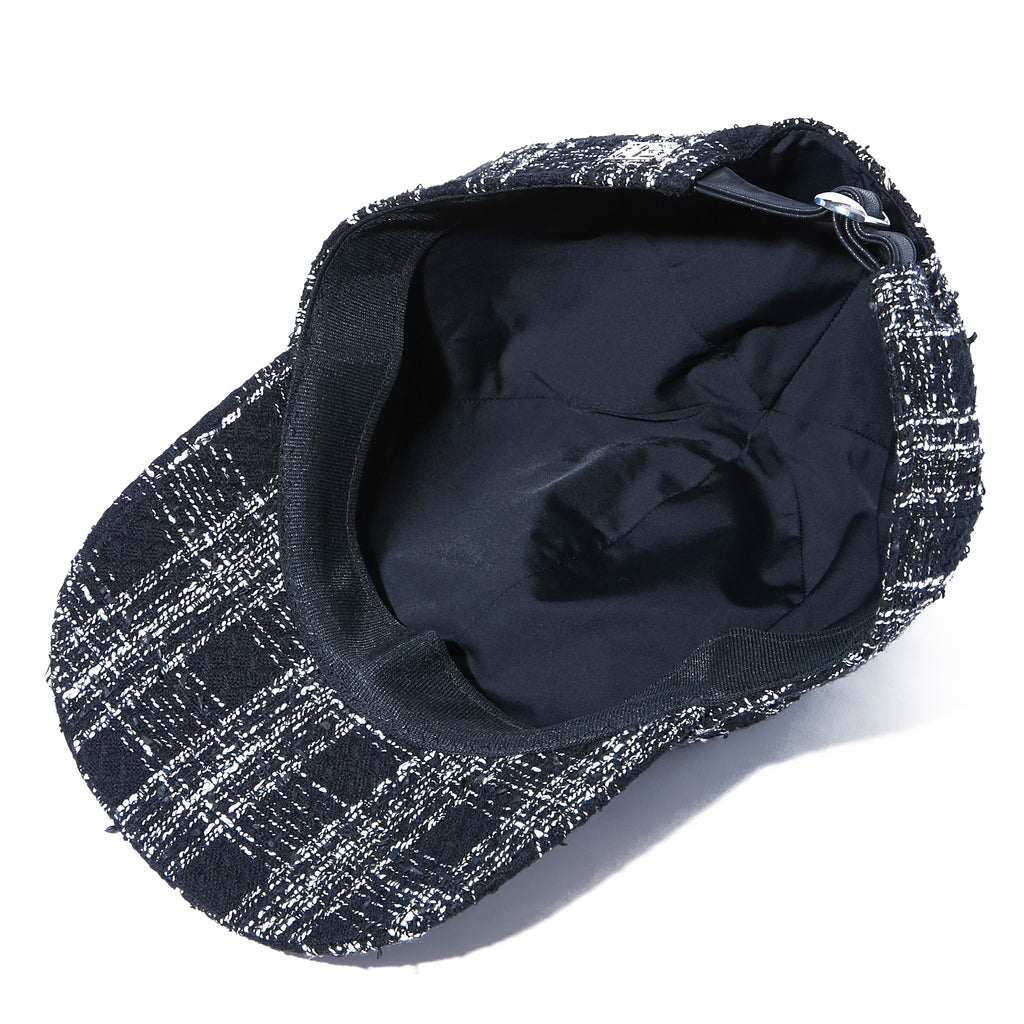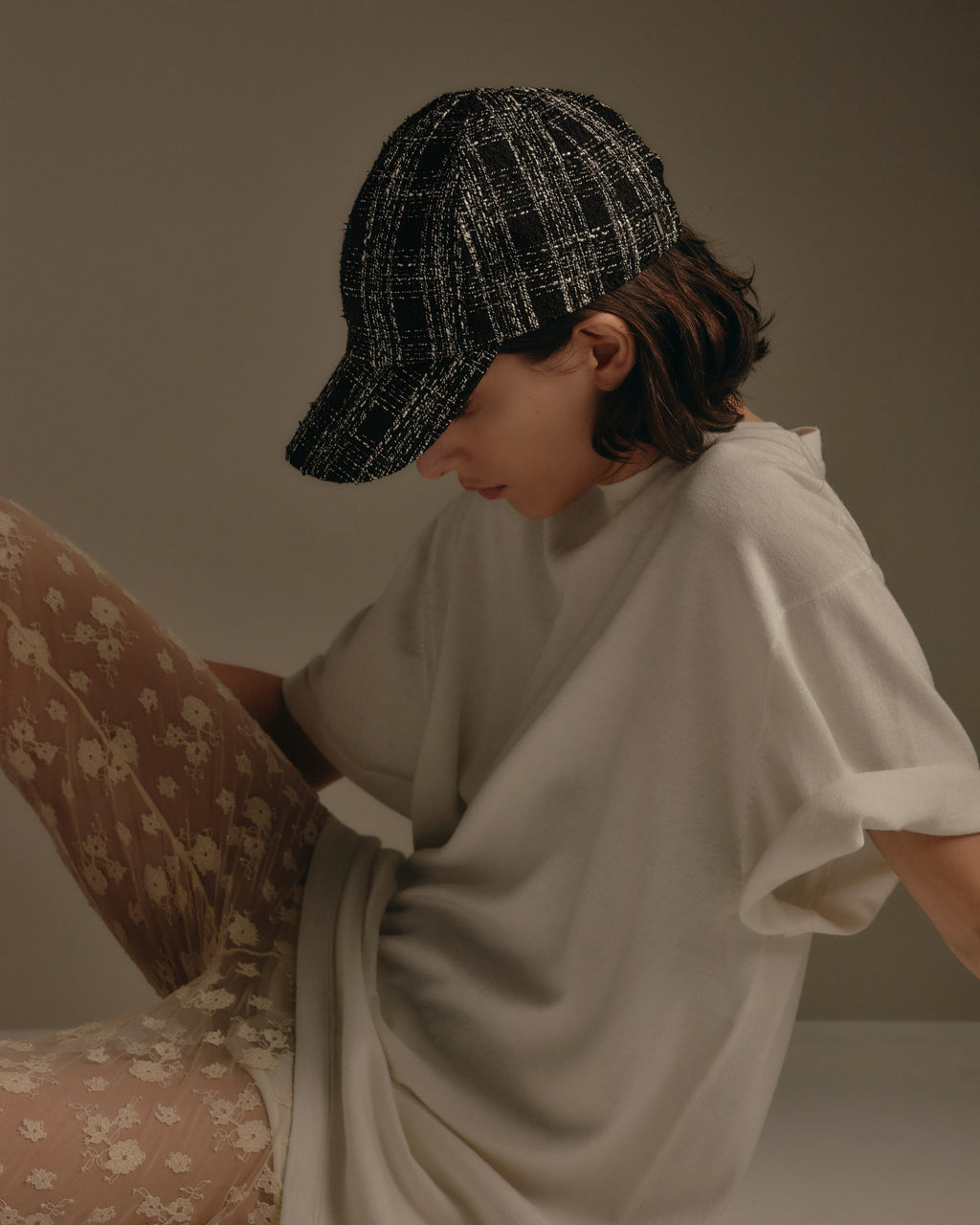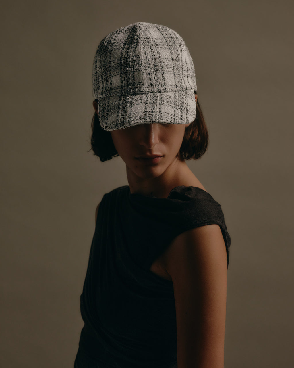 將不同材質交錯的格紋設計重新現代化演繹的帽款